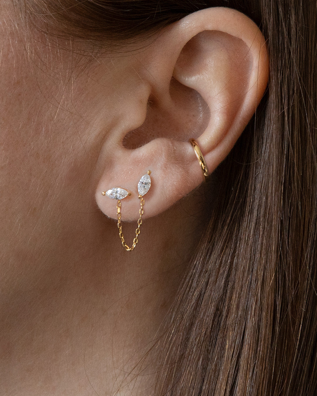 1. Attach one of the Chain Ear Jacket (Small) to the Marquise Stud and put it through your first piercing.