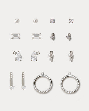Get a little extra with this luxe set for the ultimate statement earring looks in Sterling Silver. Curated with our favorite high-sparkle designs, create endless unique combinations and get ready to shine bright with the compliments. This set includes: