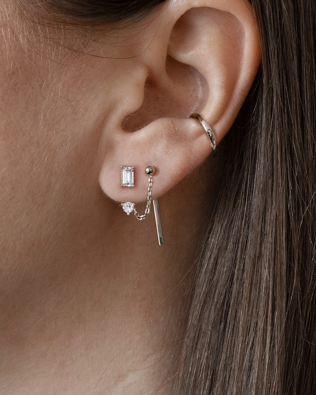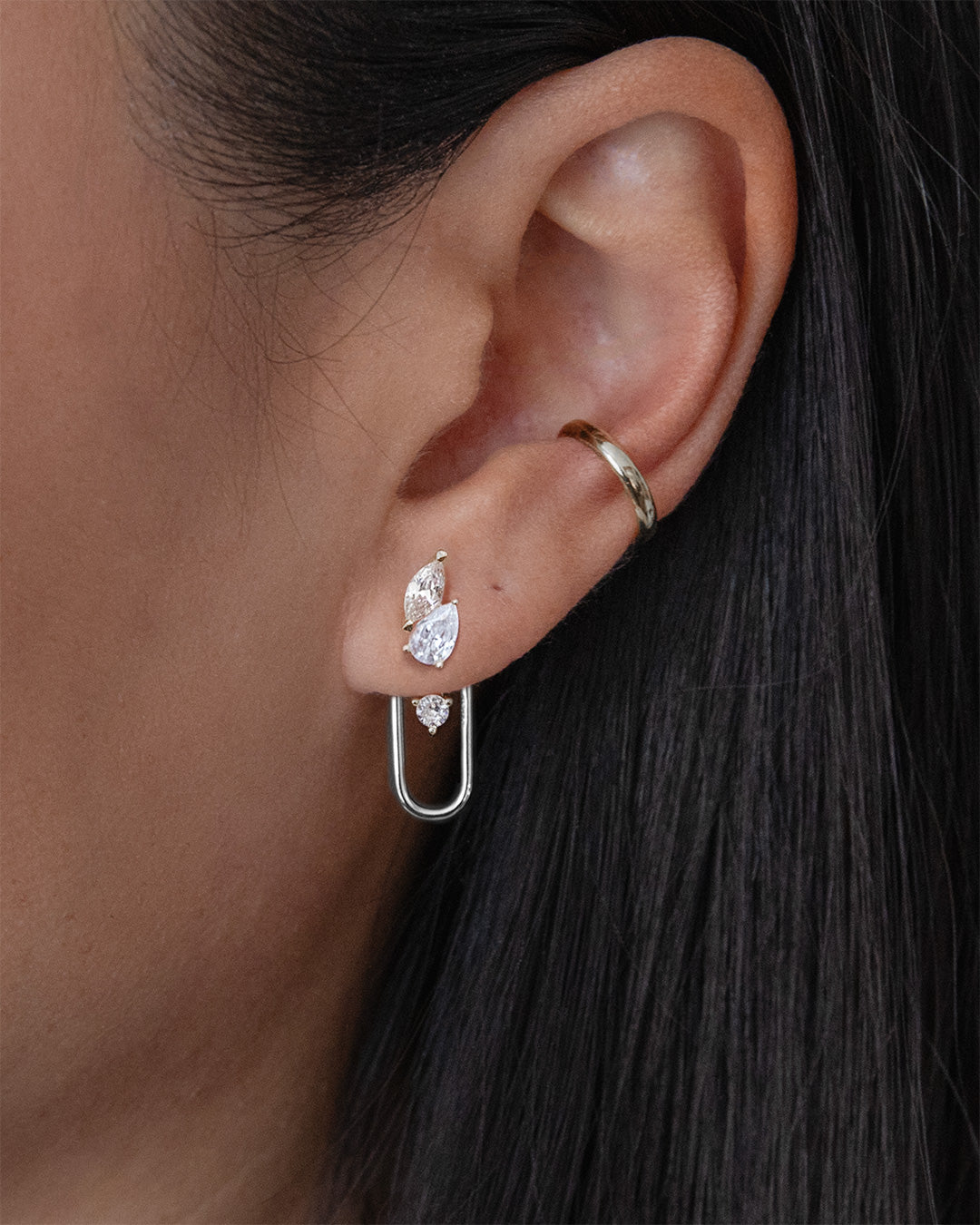 Our silver pieces are made from sterling silver which is plated with rhodium for durability and shine.