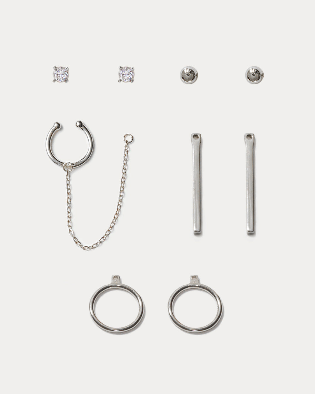 One piercing, all the fun. The One & Only set gives you the stacked earring look with no extra piercings needed. You just need one piercing. It starts with our Chain Cuff Ear Jacket that cuffs onto your ear to create the illusion of a stacked look. It’s perfectly paired with our most-loved and versatile studs and ear jackets, to unlock endless creativity and effortless combinations. This 5-piece set includes: